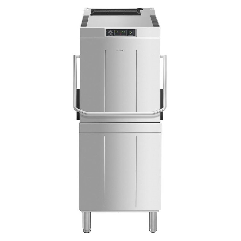 Technologie -Tableau de commandes électronique, programmes d’autonettoyage, rinçage supplémentaire, cycle eau propre, cycle final de vidange et d’autonettoyage, alerte de fin de cycle, alerte manque de sel. Diagnostic manuel. Bouton marche / arrêt. Système SHR de récupération de la vapeur: économies d’énergie, qualité de l’environnement de travail, installation sans besoin d’extraction externe. Système avec pompe de rinçage HTR avec chaudière atmosphérique associée à un Thermostop, empêchant l’eau froide de pénétrer dans la chaudière en cycle de rinçage, pour une température constante de 87°C. Système Soft Start: augmentation progressive de la pression d’eau en début de cycle de lavage pour préserver la vaisselle fragile. Compteur de cycles. Système de veille.
