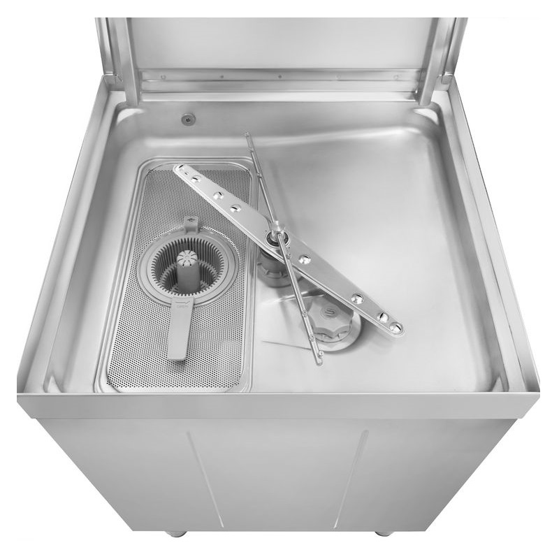 Construction en acier inoxydable, cuve emboutie en acier AISI 304, fond et guides de panier moulés. Capot simple paroi à structure conçue pour limiter les pertes de chaleur. Bras de lavage et de rinçage supérieurs et inférieurs séparés, en acier inoxydable. Doseurs de produits de lavage et de rinçage avec pompe péristaltique à réglage électronique. Filtration dynamique à 5 étapes pour éliminer totalement toutes les impuretés.