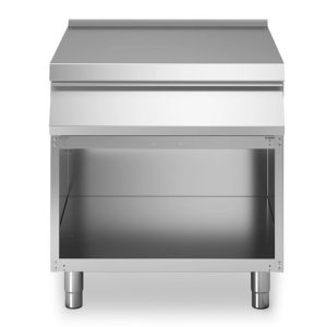 Eléments de fourneau de gamme 900, permettant d’intégrer des plans de travail avec ou sans rangement dans un ensemble de cuisson Roc 900. Modules neutres de largeur 400 et 800 mm, équipés de structures tiroirs avec guides inox avec façade, montés sur glissières extractibles destinées à recevoir des bacs GN 1/1 de profondeur 100 mm…