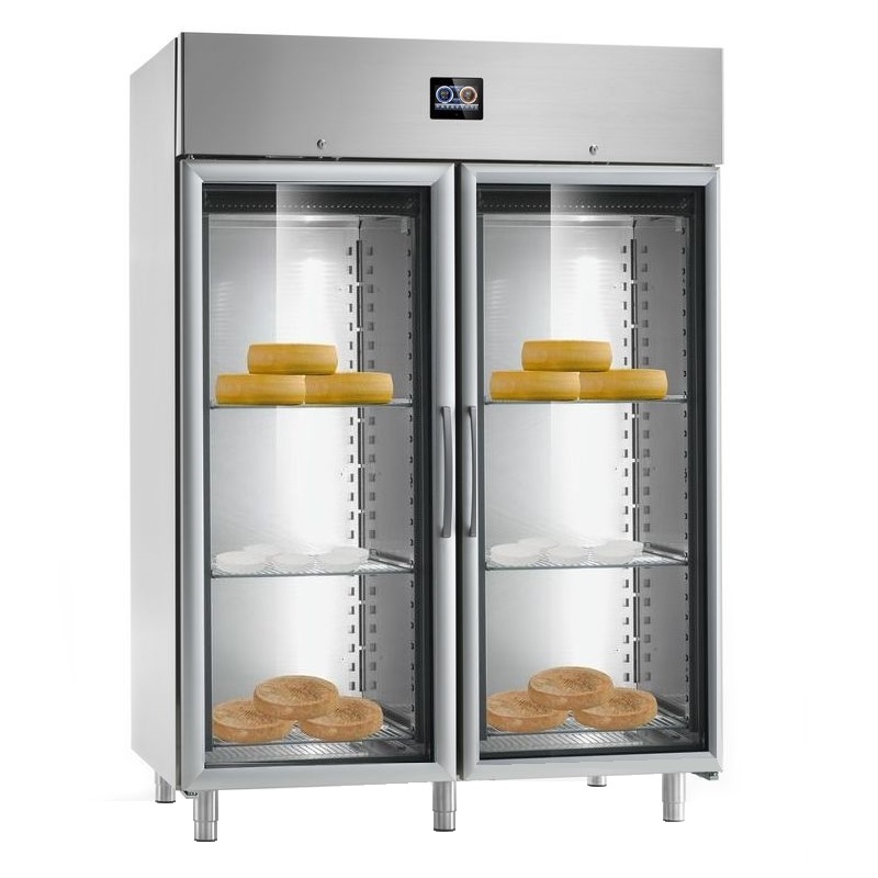 Armoire réfrigérée conçue pour l’affinage des fromages et la fermentation des yaourts. Deux volumes: 700 litres / 1400 litres. Avec porte(s) inox pleines ou porte(s) vitrées. 3 grilles inox redisposables par porte en dotation.