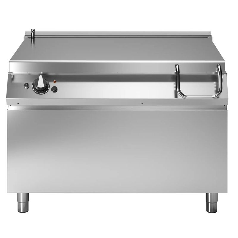 Sauteuse braisière électrique à cuve basculante. Gamme Roc 900 Modular. 2 modèles: 80 litres en largeur 800 mm et 120 litres en largeur 1200 mm. Cuve inox AISI 304 à fond inox lisse, chauffée par résistances blindées haute performance. Température de fonctionnement: 100°/285°C. Basculement électrique motorisé par vis sans fin. Remplissage en eau par colonne de distribution…