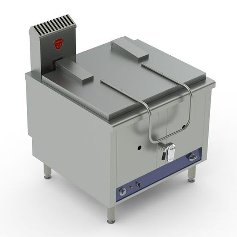 Cuve en acier inox 18-10 épaisseur 20/10°, avec panache supérieur. Repères mini / maxi de niveau d’huile. Zône froide et zône de rétention avec grille amovible en fond de cuve. Robinet de vidange chromé en façade. Couvercle en acier inox épaisseur 15/10°, sur charnière à ressort zingué pour maintien ouvert avec poignée en tube inox (modèle de 70 Kg/h), ou enlevable avec poignées chromées (modèle 80 Kg/h).