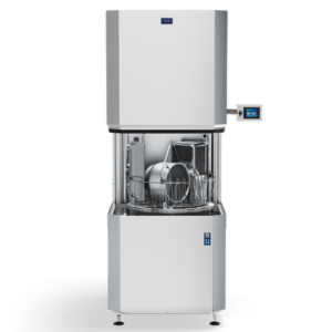 Caractéristiques: capacité jusqu’à 120 casiers / heure. 7 cycles: court, intensif, standard, rénovation, infini, hygiène, ustensiles à 60 / 90 / 180 sec et cycles spéciaux. Cycle d’auto nettoyage final. Interface USB permettant le chargement des données opérationnelles. Prêt à installer: tuyaux d’arrivée d’eau et vidange, câble d’alimentation,, doseurs de détergent et rinçage, pompes de rinçage et de vidange, brise vide. Construction en acier inoxydable.
