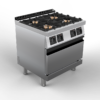 Construction en acier inoxydable AISI 304. Plan de travail de 2 mm d’épaisseur, panneau de commande en façade, habillages des côtés et arrière en inox AISI 304 de 1 mm d’épaisseur. Supports en acier inox fournis pour la fixation des appareils avec d’autres modules de la même gamme, en assurant une juxtaposition efficace et précise des plans de travail, facilitant le nettoyage et assurant l’hygiène. Arrière de plaque de cuisson avec pare-éclaboussures incliné sur le dessus, et cheminée intégrée d’évacuation des gaz brûlés avec grille de fermeture en acier amovible. Elément à poser doté de pieds d’appui inox réglables avec base en matière plastique anti-rayures. Elément sur placard de rangement avec plancher, sans porte, en acier inoxydable AISI 304, intérieur à angles arrondis (nettoyage) et pieds en tube inox avec vérins de réglage (variation de hauteur sur 6 cm).