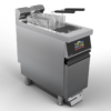 Friteuse électrique Superfry 2 cuves x 15 litres. Bloc modulaire sur coffre largeur 800 mm. Friteuse programmable par commandes électroniques tactiles intuitives avec affichage sur écran couleur de 5″ étanche. Jusqu’à 20 programmes totalement personnalisables sur un ratio temps / température de cuisson, directement relié au système de levage automatique des paniers. Friteuse proposée en trois niveaux de finitions: relevage automatique des paniers seul – filtration de l’huile à chaud seule (Express Filtration System) – relevage automatique des paniers + filtration à chaud.