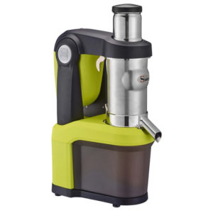 Corps de l’appareil en aluminium et zône alimentaire 100% en acier inoxydable. Goulotte d’introduction extra large de 79,5 mm de diamètre, permettant de passer des fruits et légumes entiers sans prédécoupe. Bec verseur à hauteur 210 mm, acceptant les verres, les pichets et les bols de blenders. Contenance du conteneur à pulpe 4 litres, et possibilité d’évacuation en continu. Toutes les pièces en contact avec les aliments sont amovibles pour un nettoyage facile et lavables en lave vaisselle ou manuellement à l’eau chaude savonneuse.