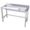 Table de travail centrale Ergonomix, sans dosseret, bords avant et arrière rayonnés. Largeur 700 mm. Construction en acier inox alimentaire. Teneur en chrome supérieure à 17,5%. Epaisseur 15/10 ème. Plateau double par panneau stratifié avec sous face en aluminium. Piètement en tube acier inoxydable carré 40 x 40 mm.
