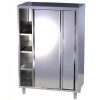 . Bord avant de plateau rayonné. Aménagement de l’étuve avec étagère inox réglable en hauteur, charge supportée de 160 Kg. Côtés doublés, portes coulissantes doublées, avec butées d’arrêt. Poignées de portes pliées sur toute la hauteur, avec bords écrasés.
