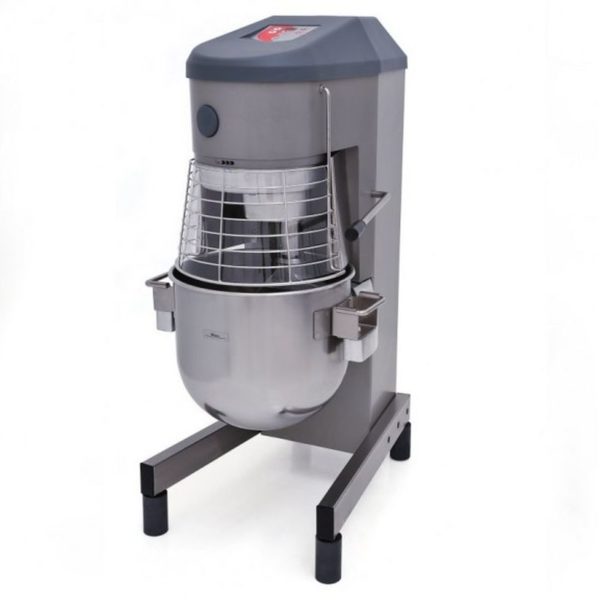 Batteur mélangeur à usage professionnel. Cuve 40 litres, pour 12 Kg de farine à 60% d’eau. Spécialement indiqué pour laboratoires boulangerie, pâtisserie, pizzas industrielles, collectivités. Commandes électroniques, variateur de vitesse, minuterie. Fonctionnement asservi au bon positionnement du bol et de la grille de sécurité. Levage de cuve par levier. Avec ou sans prise d’accessoires…