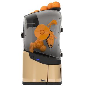 Minex, presse oranges professionnel, pour le service et la vente de jus au verre ou en carafe. Consommation modérée. 2 modes de service: par robinet libre service pour presser directement au verre, ou par pot intégré de capacité 75 cl. Particulièrement adapté pour bar, brasserie, hôtel, pub, salle de réunions, salon de thé pâtisserie, coffee shop, food truck. Rendement de 13 fruits / minute, 25 cl de jus en 15 secondes. Diamètre de fruits entre 65 et 78 mm. Capacité d’alimentation 6 / 7 fruits.
