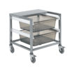 Chariot porte assiettes pour stockage des assiettes garnies avec entrées et desserts. Conçu pour banquets en restauration, collectivité, traiteur. Système de doigts avec revêtement antidérapant maintenant les assiettes bien horizontalement et permettant de déplacer le chariot en toute sécurité. 4 capacités: 30 / 60 / 80 / 120 assiettes. Système de réglage individuel de chaque panneau conçu pour accepter les assiettes de toutes tailles jusqu’à Ø 32 cm sur le même chariot.