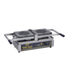 Gaufriers double ferrage conçus pour une cuisson sans besoin de retourner l’appareil. Gamme de 5 moules doubles pour usage intensif. Fonctionnement électrique en 230 V. Commutateur avec thermostat de 0° à 300°C. Voyant de contrôle, minuterie. Livrés avec brosse d’entretien. Plaques en fonte brute. Tiroir inox de récupération des coulures sous la plaque inférieure…