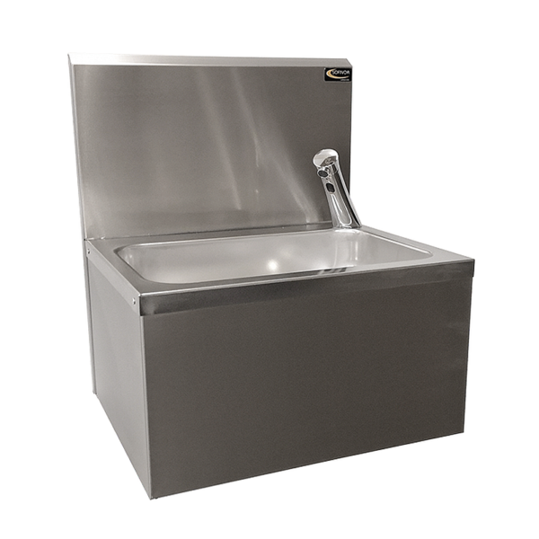 Lave-mains électronique, gamme économique, conçu pour petit budget et espaces réduits (petite restauration, food-truck, etc) 2 modèles, avec cuve ronde ou cuve rectangulaire. Construction tout acier inox alimentaire AISI 304L. Lave-mains mural avec dosseret de hauteur 270 mm. Contrepli sur la partie haute du dosseret, avec inclinaison à 30° pour éviter les rétentions d’eau. Cuve ronde sertie, cuve rectangulaire emboutie. Siphon PVC. Lave-mains sans distributeur de savon (accessoire en supplément).