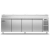 Meuble réfrigéré 3 portes GN 1/1 avec superstructure réfrigérée à couvercle rabattable pour la disposition de 9 bacs GN 1/3, et plan de travail inox ou granit de largeur 320 mm. Conçu pour les préparations froides en cuisines de restaurant, snack, collectivité… Construction tout acier inoxydable. Groupe frigorifique intégré, monté sur glissières. Froid positif ventilé. Dégivrage automatique. Commandes électroniques…