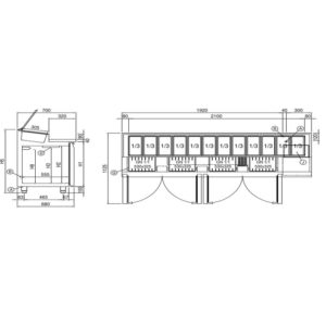 Station de préparation d’entrées froides, sandwichs… Permet de disposer du stockage froid des produits et des ingrédients composant la carte. Meuble en soubassement réfrigéré 4 portes pour grilles GN 1/1 (4 grilles plastifiées et 4 jeux de glissières fournis), et dessus plan de travail inox ou granit avec dosseret arrière et sperstructure réfrigérée pour la mise en place de 12 bacs alimentaires à ingrédients GN 1/3 de profondeur 150 mm maximum. Profondeur utile deu plan de travail sur l’avant 320 mm.