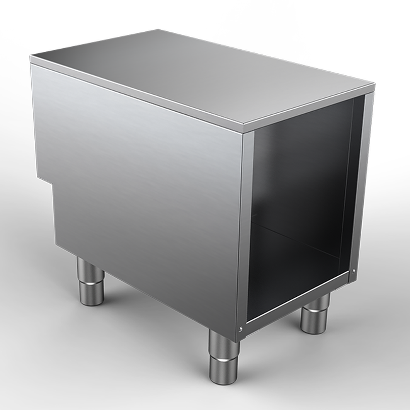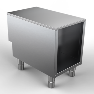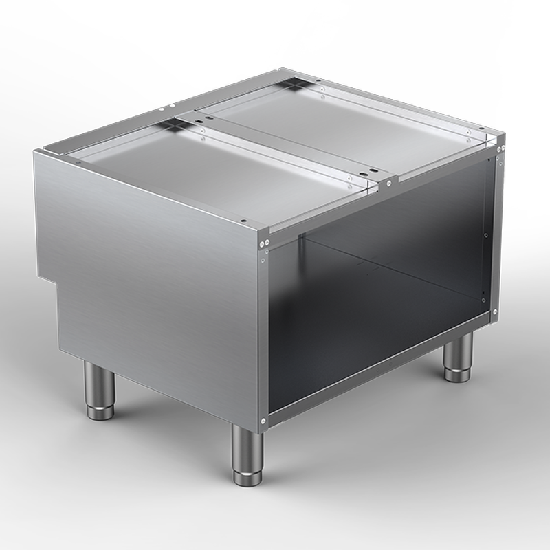 Soubassements neutres inox sur baie ouverte, spécifiques pour accueillir les modules top de la gamme de cuisson Milo 700. 3 largeurs, 400 mm pour 1 élément, 800 mm pour 2 éléments, 1200 mm pour 3 éléments. Dessus avec structure de bon positionnement et de fixation des éléments top…
