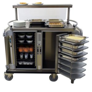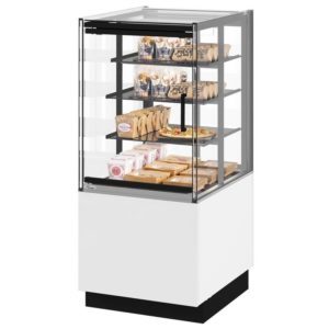 Vitrine chaude de merchandising en libre service. Idéale intégrée en comptoir de magasin boucher traiteur, boulangerie pâtisserie, ou hors comptoir en supermarché. Vitrine modulaire 4 niveaux, prête à brancher, sur support ou encastrable. Etagères verre inclinables, réglables en hauteur, avec éclairage LED. Maintien des produits hors emballage à ≥ 65°C, air ventilé + humidification. Toutes faces vitrées, portes verre…