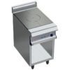 4 feux nus:: brûleurs démontables à flamme pilotée de 4 x 4,8 kW. Grilles de feux en inox de dimensions 300 x 550 mm. Cuvettes embouties et tiroirs de propreté. Sécurité par veilleuse et thermocouple. Manettes de commandes sécurisées et protégées.