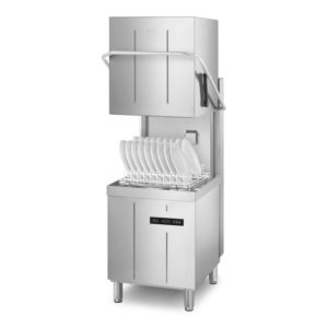 Construction en acier inoxydable 18/10 AISI 304. Cuve emboutie à simple paroi, à angles rayonnés (facilité et qualité du nettoyage). Filtre de cuve inox. Capot simple paroi. 2 bras de lavage et 2 bras de rinçage à rotation dissociée, en acier inox AISI 304. Chaudière vidangeable en totalité par tube d’évacuation et thermostop. Cycle « vidange et auto-nettoyage de la cuve » automatique en fin de service. Diagnostic manuel. Doseurs de produits de rinçage et de détergent intégrés, avec pompe péristaltique à réglage électronique. Alerte de fin de cycle.