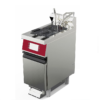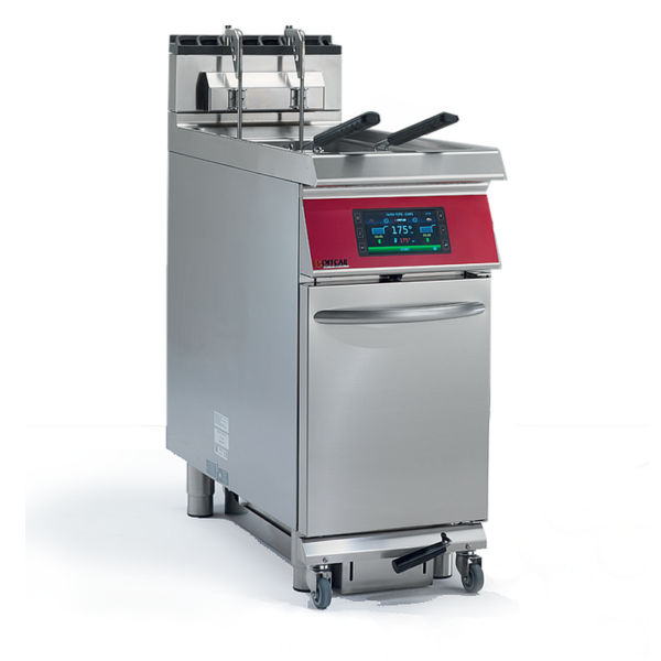 Friteuse à haut rendement Offcar Superfry. Energie gaz. Capacité 25 litres. Bloc modulaire en profondeur 900 mm permettant l’alignement avec une ligne de cuisson standard 900. Largeur 400 mm. 2 versions: avec relevage automatique de paniers et filtrage d’huile ou avec filtrage d’huile seul.