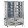 Armoires spécifiques pour la présentation de chocolats ou entremets au chocolat. Armoires verticales à vision 360° sur les produits, 4 faces vitrées (3 faces + porte), froid ventilé. 3 modèles: Volume 350 litres, équipement intérieur 5 tablettes verre réglables en hauteur de dimensions 420 x 450 mm – Volume 350 litres, équipement intérieur 6 plateaux tournants en verre de diamètre 430 mm – Volume 500 litres, équipement intérieur 5 tablettes en verre de dimensions 560 x 555 mm.