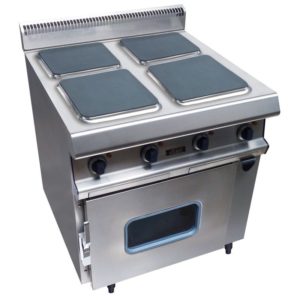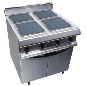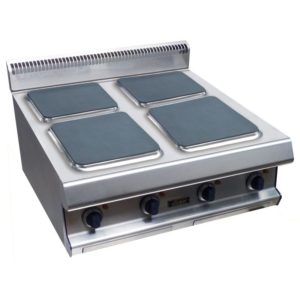 Bloc de cuisson électrique. Dessus plaques chauffantes électriques carrées. 2 plaques en largeur 400, 4 plaques en largeur 800. Plaques fonte 300 x 300, rehaussées, étanches. Puissance unitaire 4 kW. Commandes individuelles par commutateur 7 positions. Dessus seul à poser, dessus sur soubassement placard ouvert, fermé, chauffant, ou su four électrique statique ou air pulsé…
