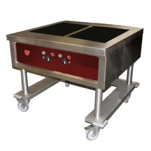 Gamme XL Concept; Annexes mobiles 2 foyers de cuisson. Energie gaz ou électrique, gamme avec module 2 feux gaz, 2 plaques fonte électriques, ou 2 foyers induction. Construction acier inox. Sur soubassement socle inox équipé de 4 roulettes, dont 2 avec frein.
