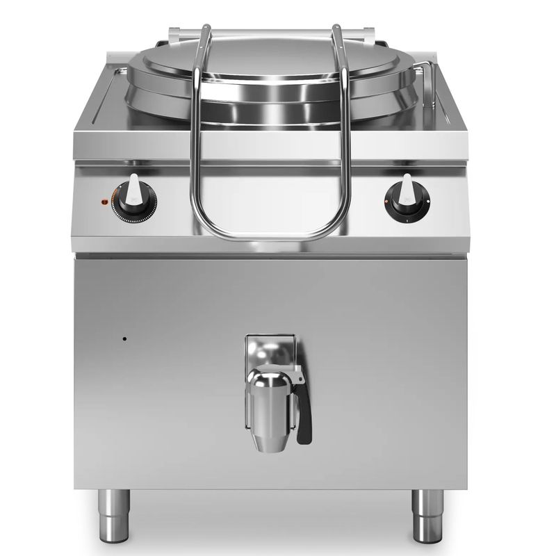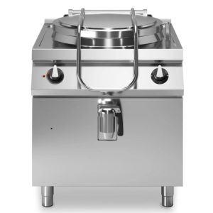 Marmites électriques à chauffage direct de la cuve. Gamme Roc 900. 2 capacités: 100 litres / 150 litres. Positionnement individuel ou intégré à une ligne de cuisson de la même gamme avec double système de jonction pour un parfait alignement..
