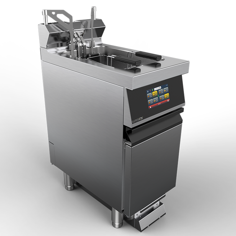 Friteuse modulaire électrique sur coffre. Haut rendement et mode Eco, assurant la plus grosse production / litre au moindre coût d’énergie. Capacité 15 litres. Largeur 400 mm Friteuse programmable via la commande électronique à affichage sur écran tactile HD couleur waterproof: jusqu’à 20 programmes personnalisables par le temps et la température. 3 versions: relevage automatique seul – filtration à chaud (système Express filtration) sans relevage automatique – dotation complète avec relevage et filtration à chaud.
