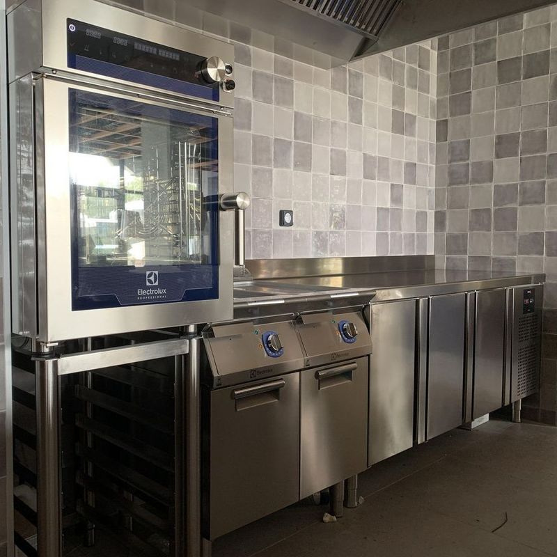 Dagard: chambres froides – Unox: fours mixtes – Electrolux: fourneau, lave vaisselle capot – Hoshizaki: armoires froides – Fagor: dessertes réfrigérées, machine sous videuse – Hobart: lave verres et osmoseur – Tournus: rayonnages, échelles, hygiène – Fabinox: inox standard et sur mesure