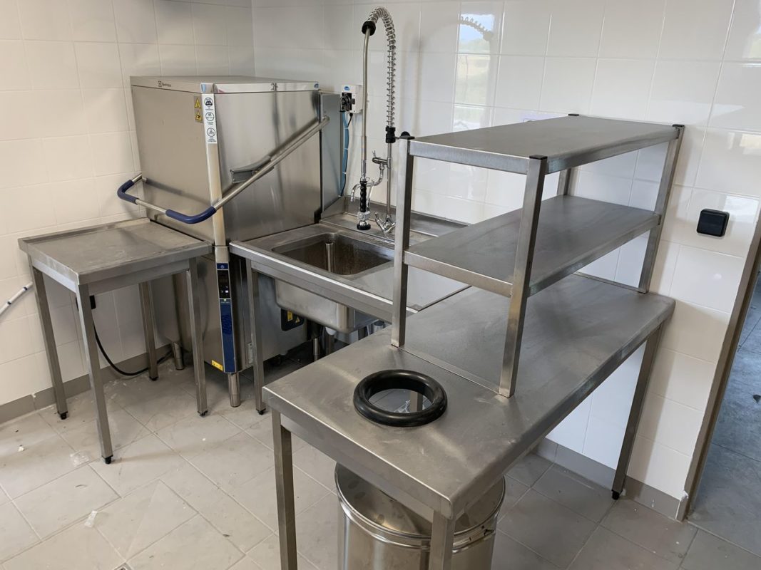 Laverie: Lave vaisselle à capot en angle et aménagement postes d’entrée et sortie – Lave verres avec osmoseur –